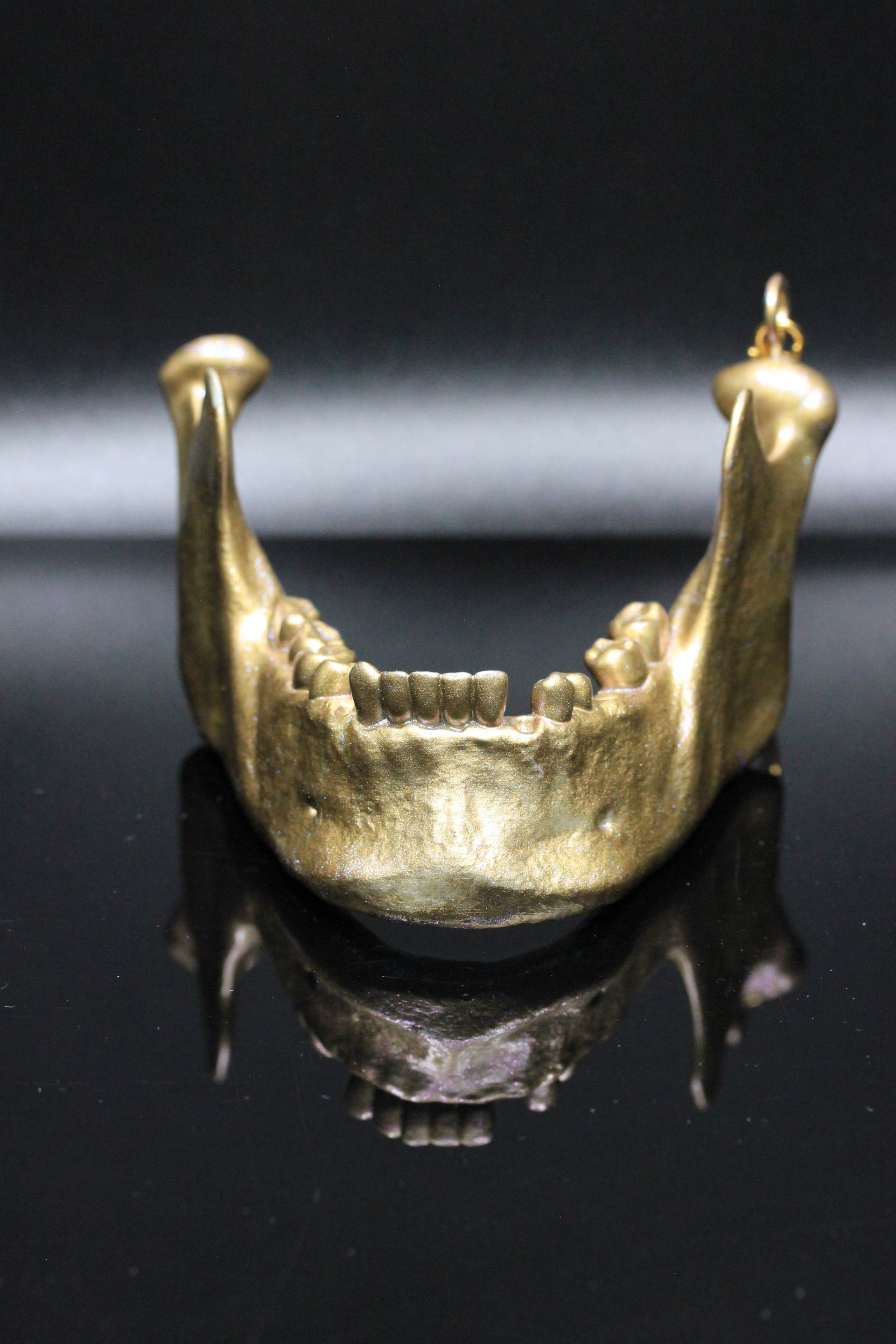 Intricately crafted and beautifully painted, this child-size jawbone ornament stands as a hauntingly stunning piece of art, perfect for any collector who appreciates unique and thought-provoking items. Its exquisite detailing captures the eye, while the delicate craftsmanship showcases the artist's skill and vision. Whether displayed as a standalone statement piece or incorporated into a larger collection, this ornament is sure to evoke curiosity and admiration, making it a must-have addition for those who seek out the extraordinary.