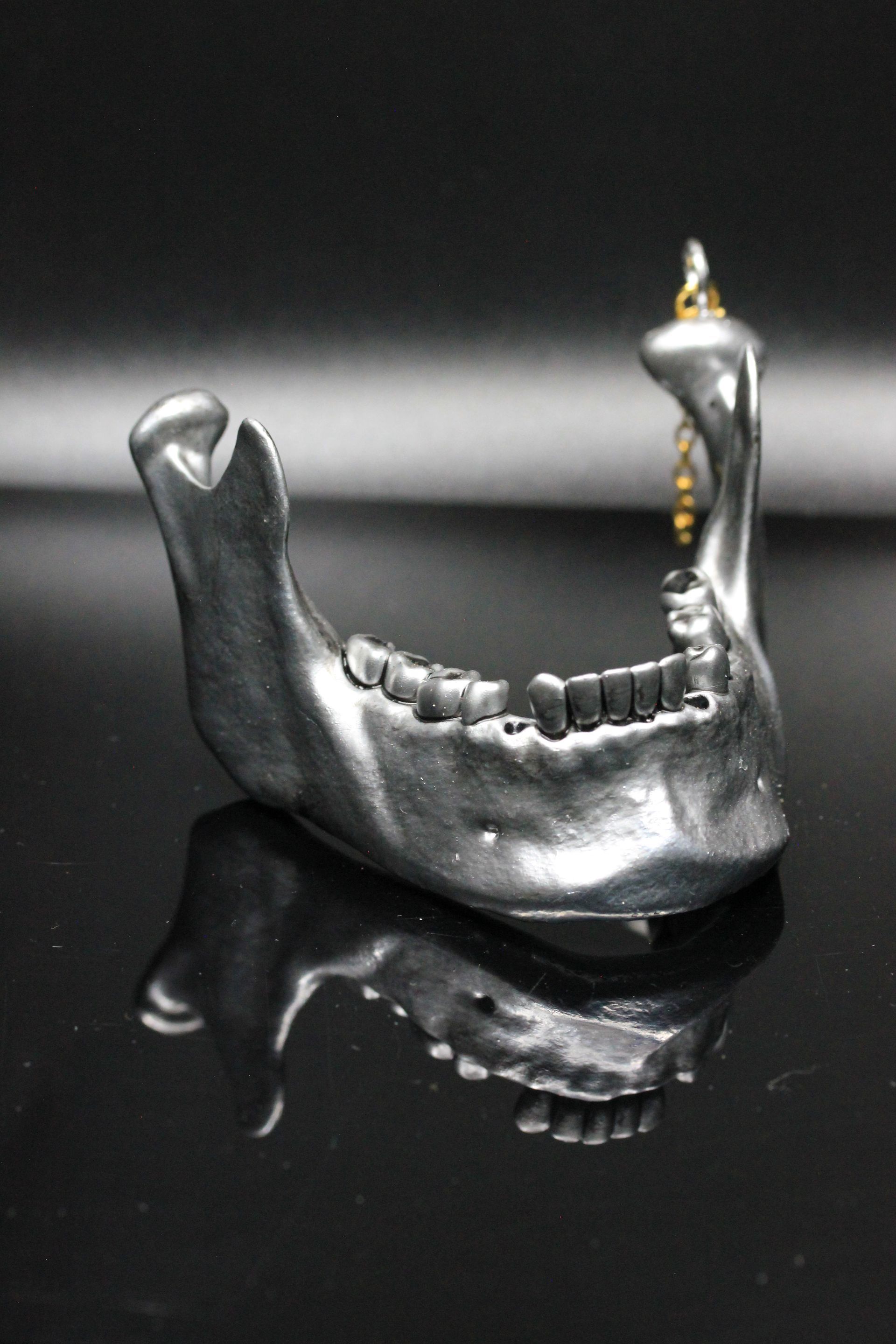 Intricately crafted and beautifully painted, this child-size jawbone ornament stands as a hauntingly stunning piece of art, perfect for any collector who appreciates unique and thought-provoking items. Its exquisite detailing captures the eye, while the delicate craftsmanship showcases the artist's skill and vision. Whether displayed as a standalone statement piece or incorporated into a larger collection, this ornament is sure to evoke curiosity and admiration, making it a must-have addition for those who seek out the extraordinary.