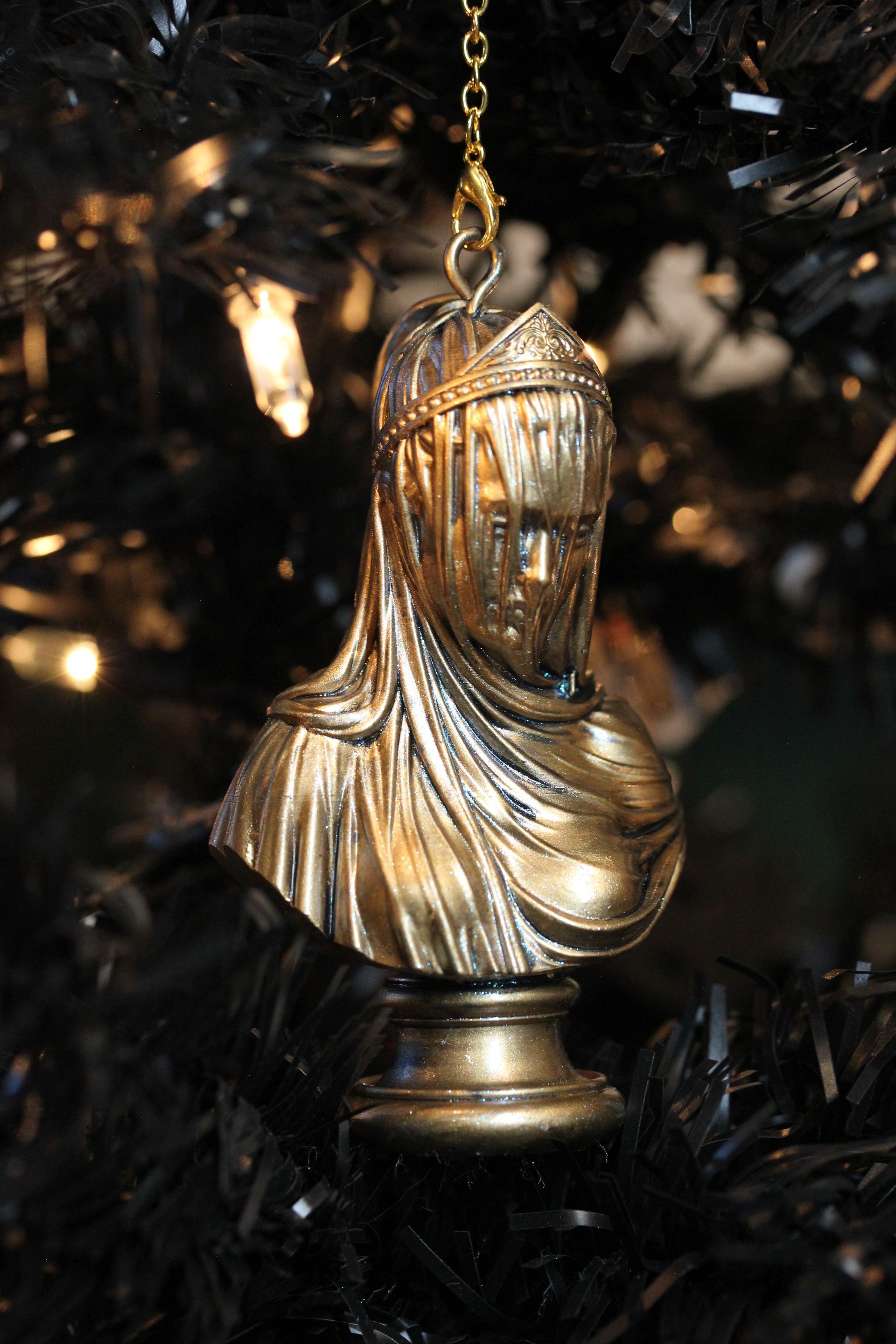 Shrouded in mystery, this stunning lady bust ornament is expertly crafted to add a bold and stylish flair to your Christmas decor. With intricate detailing and a unique design, this piece stands out as a captivating focal point that elevates your festive surroundings. Whether placed on a mantel, shelf, or table, it exudes elegance and sophistication, making it a perfect addition to both traditional and contemporary holiday settings. Embrace the allure of the season with this striking ornament that not only enhances your decor but also sparks conversation among your guests.